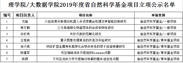 近日,浙江省科学技术厅、浙江省自然科学基金委员会发布“关于2019年度浙江省自然科学基金拟资助项目公示的通知”,公司共有7个项目获浙江省自然科学基金项目立项。
