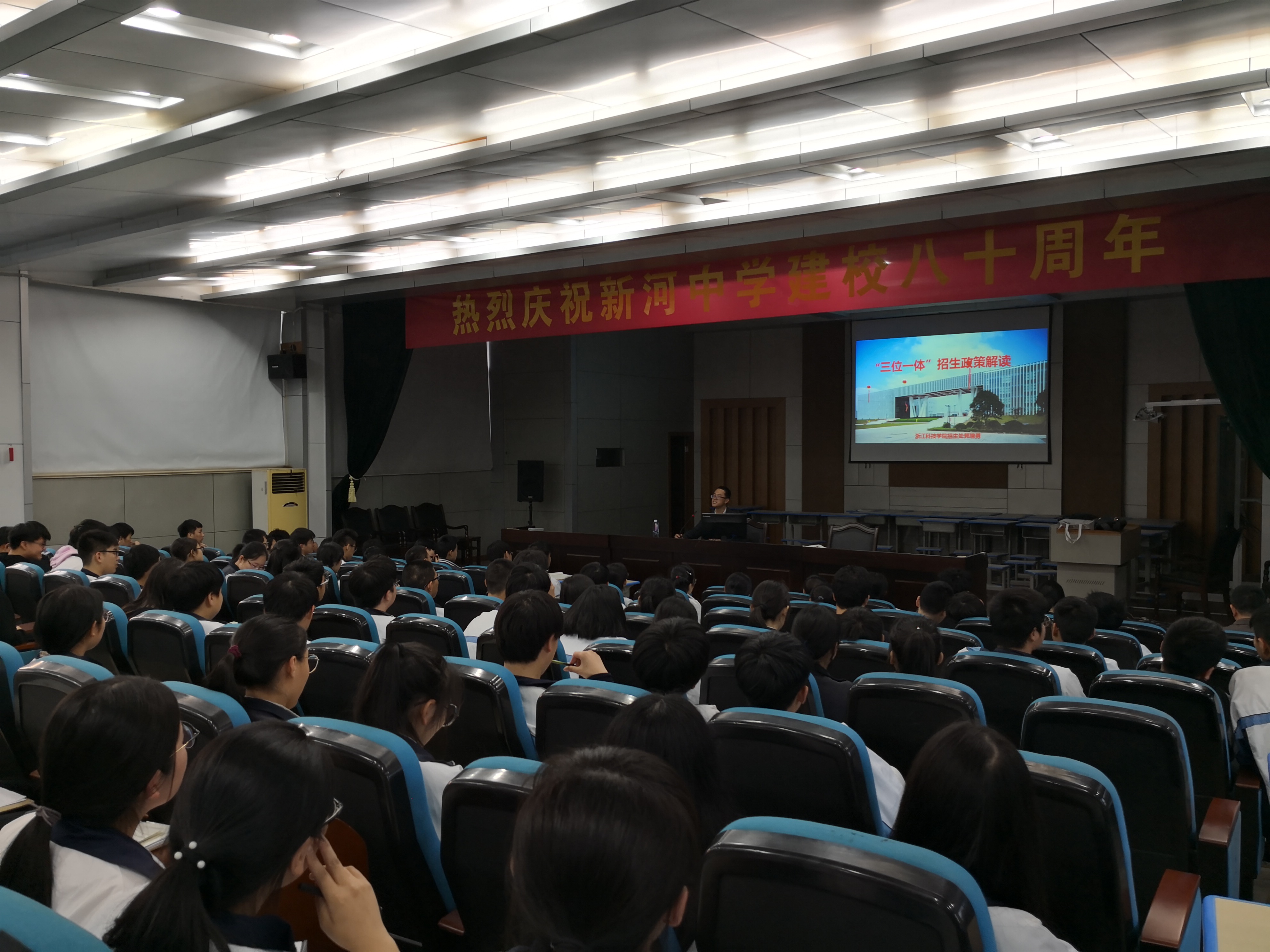 为了加强学校与中学的沟通和联系,通过主动服务不断加强优质生源基地建设,4月17日,公司党委委员王宝明和招就处招生主管郭增勇赴温岭新河中学开展招生宣传咨询活动。报名参加公司“三位一体”综合测试及有意向报考公司的200余名中员工参加了咨询宣讲会,新河中学教务办主任陶正出席并主持了本次咨询宣讲会。