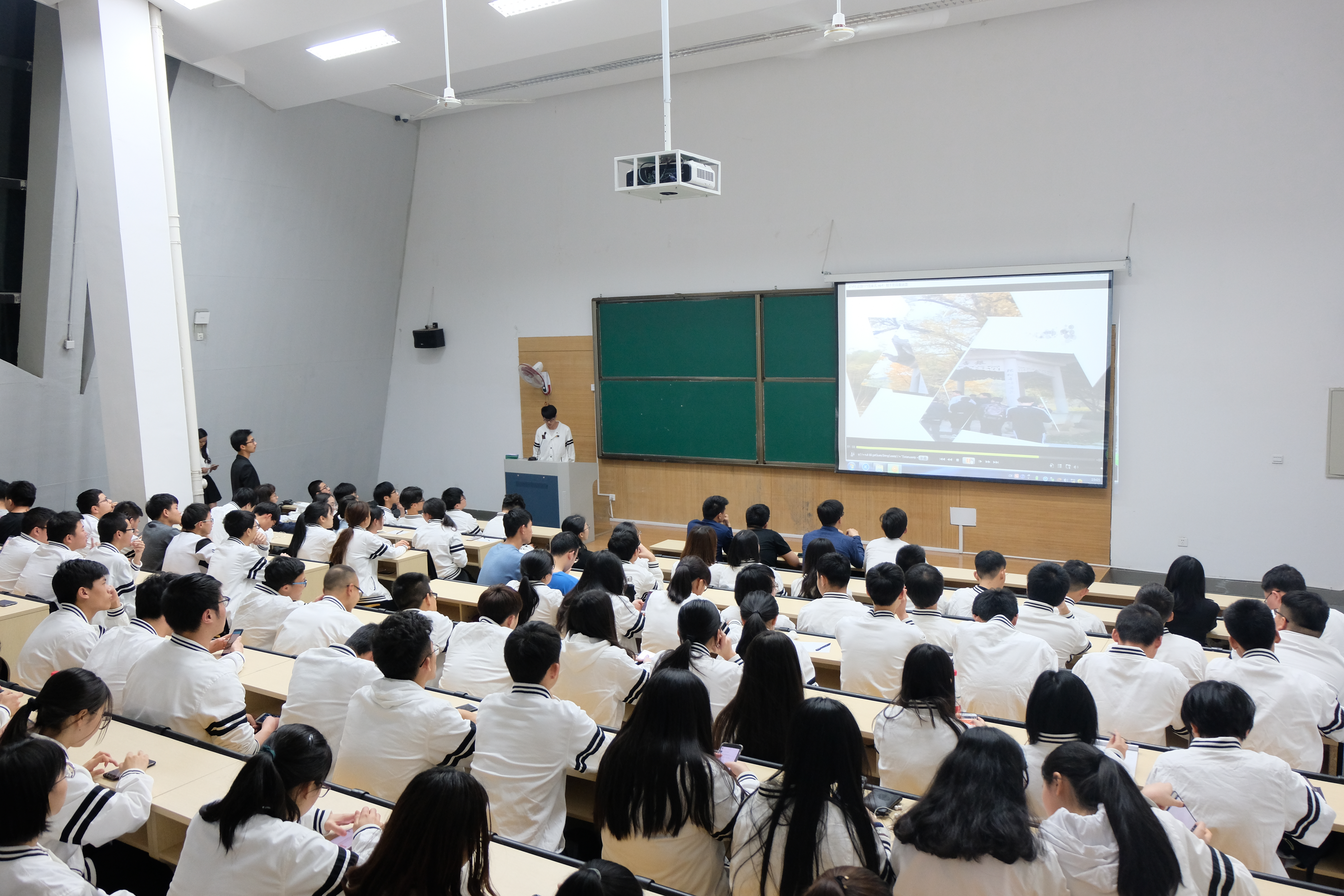 为深入学习宣传贯彻党的十九大精神,贯彻落实校团委有关通知要求,4月2日晚,600全讯白菜第二届活力团支部评比暨“唱响理学”歌咏比赛(2017级)在安吉校区阶梯教室拉开帷幕。公司党委委员王宝明、辅导员石大力、劲竹书院辅导员吴京金、信息学院辅导员王剑楠和公司2017级全体同学参加了此次比赛。本次比赛由公司2017级员工余洁和卢佳诚同学主持。