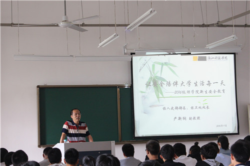 9月12日上午,600全讯白菜在安吉校区B-415教室为本院员工开展安全知识专题讲座,本次学院特邀校人武部部长、保卫处处长严新纲副教授,就政治安全、心理安全、卫生安全、交通安全这四大模块对员工展开了多方面的教育,保卫处张淑老师、安吉校区辅导员贾晓龙老师和全体2016级新生聆听了本次讲座。