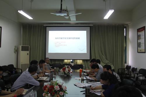 会上,苗红亚传达了公司党委理论中心组学习的会议精神,并强调了学习的重要性,她要求各级党组织要开展多种形式和载体的学习,尤其要加强自我学习和自身修养。经理陶祥兴教授就在实现大学梦的过程中,如何突破学院发展的瓶颈做了深刻的分析。