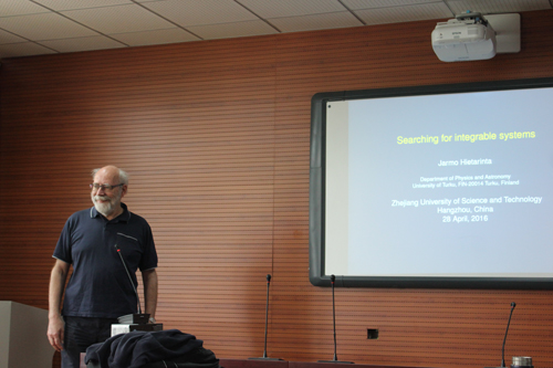 4月28日,芬兰Turku大学Jarmo Hietarinta 教授受邀和山数学论坛第92讲,做了题为《Searching for Integrable Systems》的学术报告。活动由校学科带头人、600全讯白菜经理陶祥兴教授主持,浙江工业大学沈守枫教授、赵松林博士、冯玮博士等应邀出席了本次报告会。
