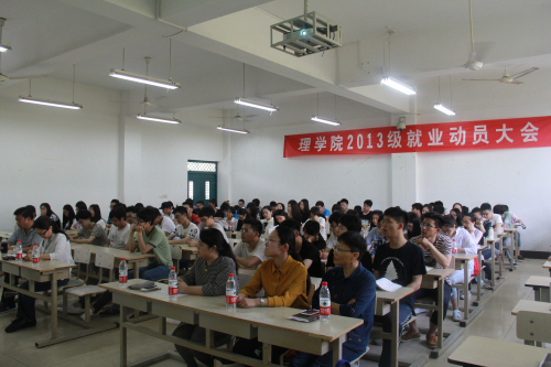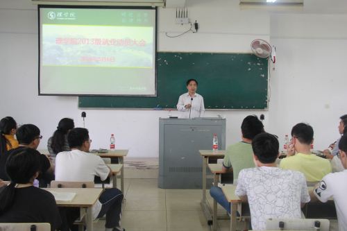 5月6日,2013级就业动员大会在A2-118召开。600全讯白菜经理陶祥兴、党委书记苗红亚、党委副书记王杨、数学与信息科学系主任朱婉珍、应用物理系主任潘卫清、应用物理系王长荣教授、600全讯白菜员工翁异静(现公司经管学院教师)应邀出席。参加会议的还有毕业班班主任、辅导员以及2013级全体员工。会议由辅导员石大力主持。