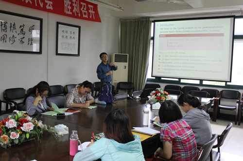 报告中,孙小春老师与大家一起讨论了Sobolev空间、Besov空间以及混合Besov空间上分数阶Navier-Stokes-Coriolis系统的整体与局部适定性;张继红老师为大家介绍了自己在随机分析及其应用方面所取得的一些研究成果。